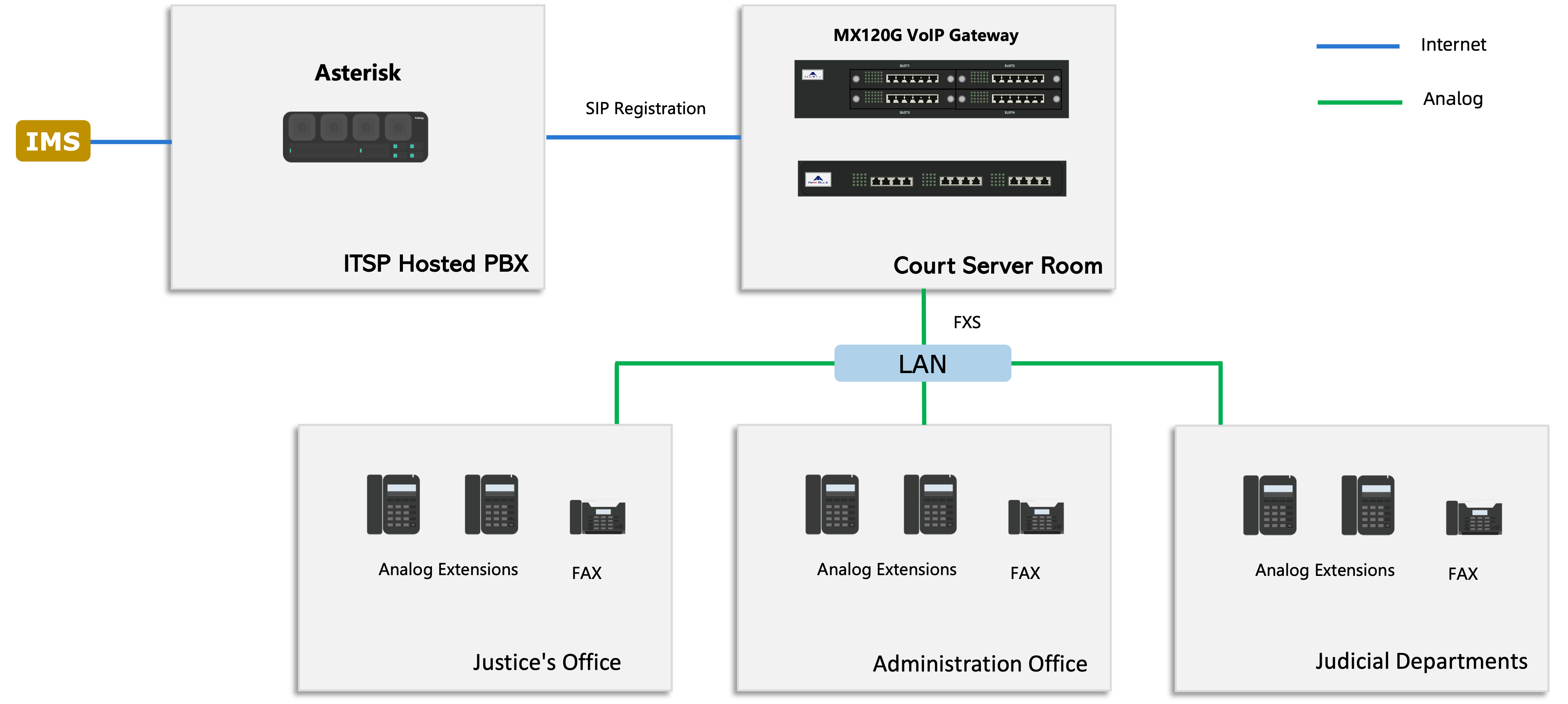 The VoIP system offered the court the flexibility to scale up or down based on its evolving communication needs, ensuring futureproofing, New Rock gateways provide flexible models for analog extension expansion on the Asterisk PBX.