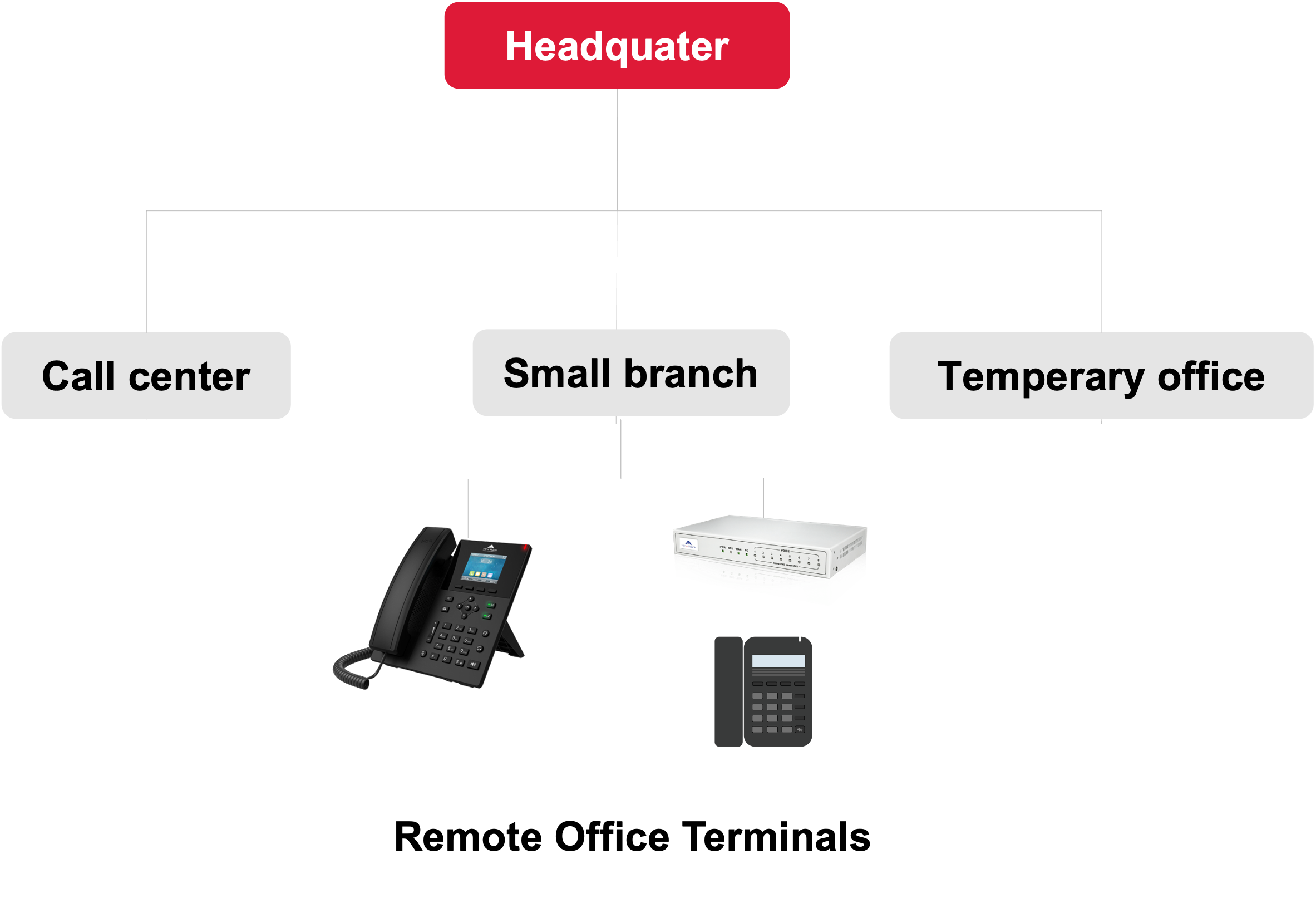 2.Free internal extension call between head office and branch, branch outbound calls via head office outbound number.