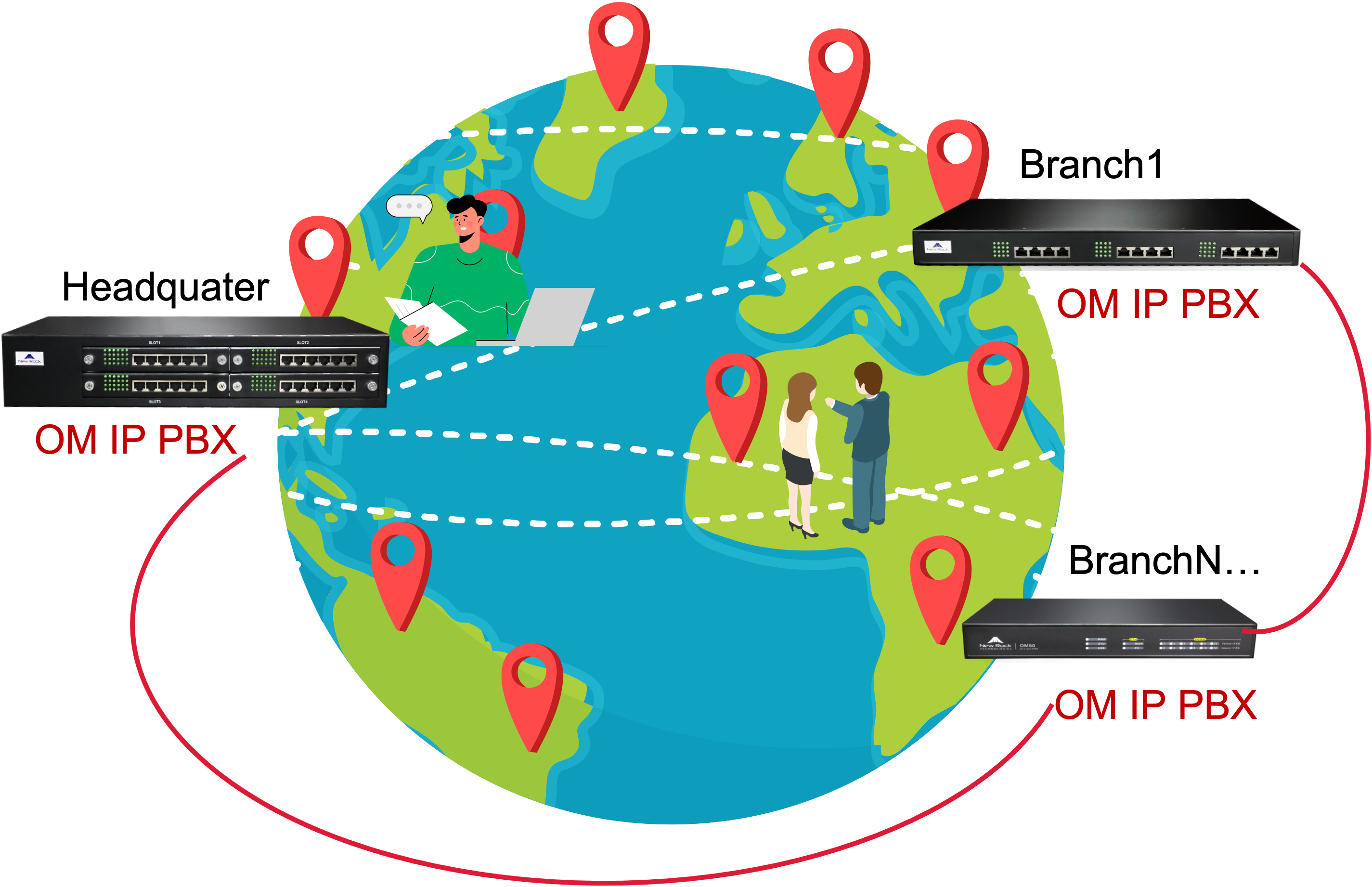 2.Multi-branch/chain enterprise networking via IP PBX