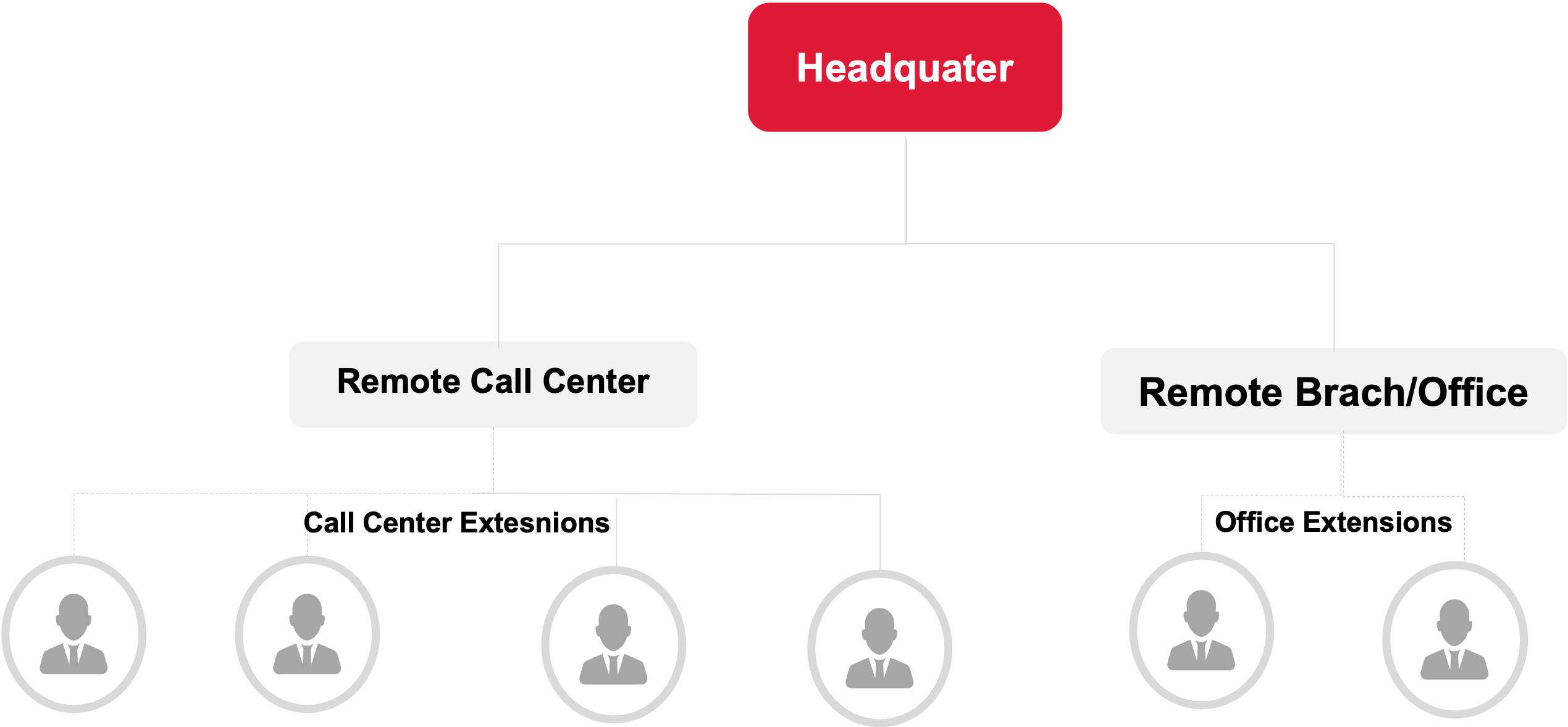 2.Distributed enterprises with remote-site interconnection (extension interconnection/outbound number sharing)