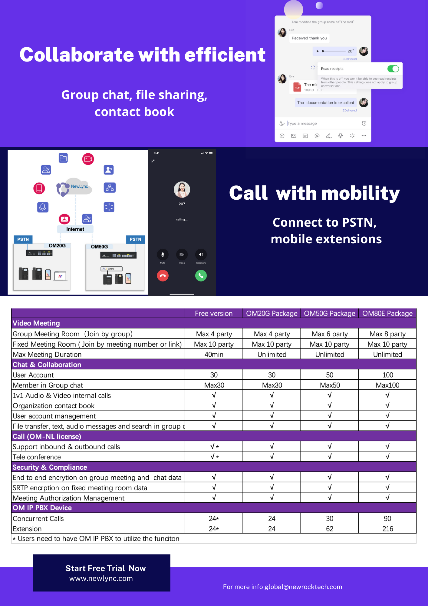 For SMBs, low costs and easy mobility are a principal consideration when choosing a enterprise collaborate and communication system, NewLync+ OM IP PBX plug and play solution might one of the easiest option, that enable SMBs to migrate to efficient collaborate system which do not require them have to have a IT expertise in the house.