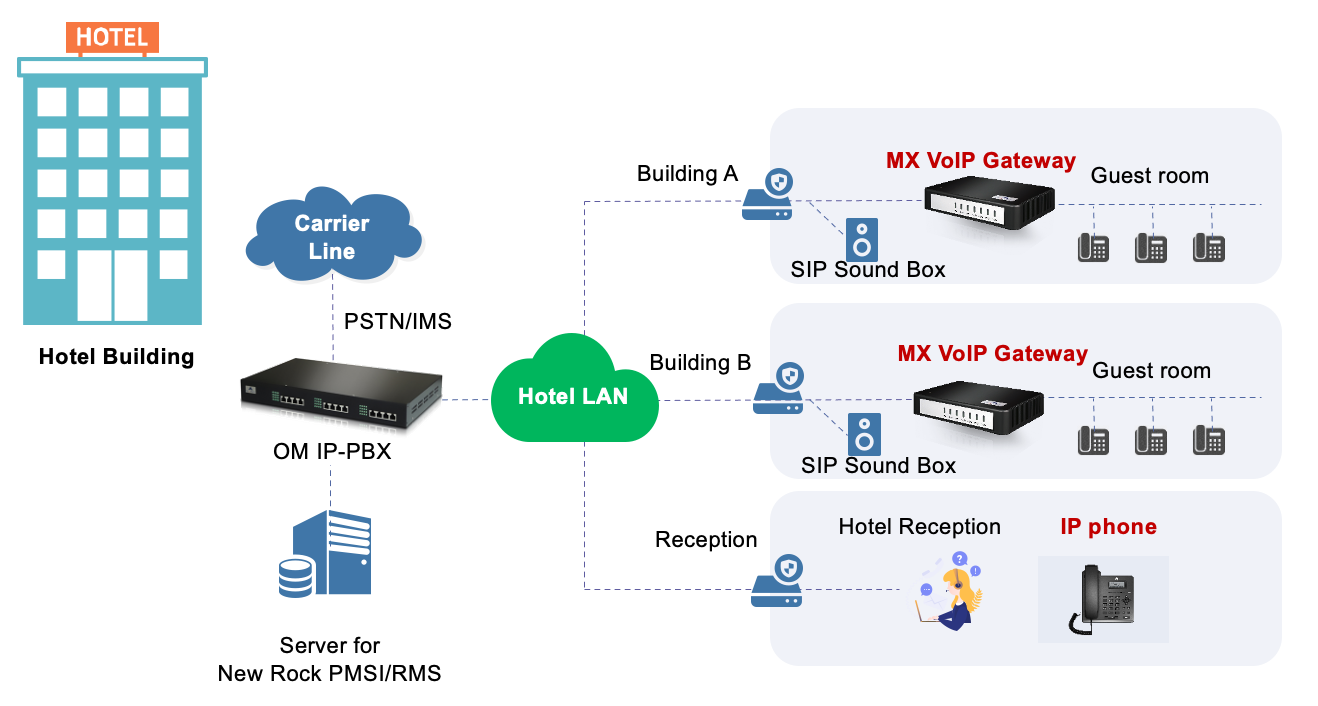 New Rock hotel VoIP solution has a unified management system, remote configuration system, and can be docked with IoT devices to realize a more efficient hotel operation environment.